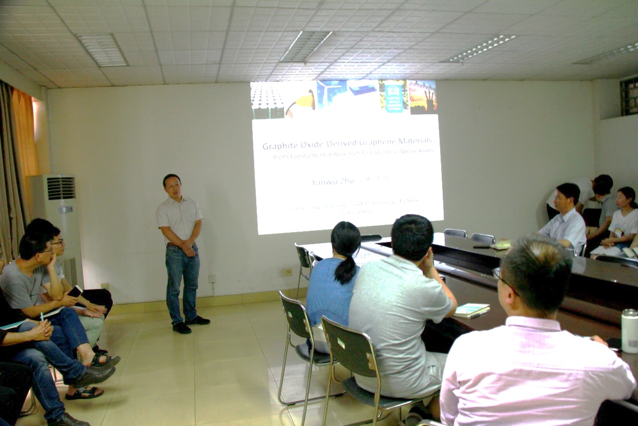 In the afternoon of May 14, 2018, at the invitation of Key Laboratory for Special Functional Material, Professor Yanwu Zhu from University of Science & Technology China visited the laboratory for academic exchanges and made an academic report entitled " Graphite materials based on graphite oxide -- from basic research to industrial applications". The report was presided over by Prof. Yong Zhao, and the teachers and students from the laboratory and relevant scientific research units of Henan University attended the meeting.