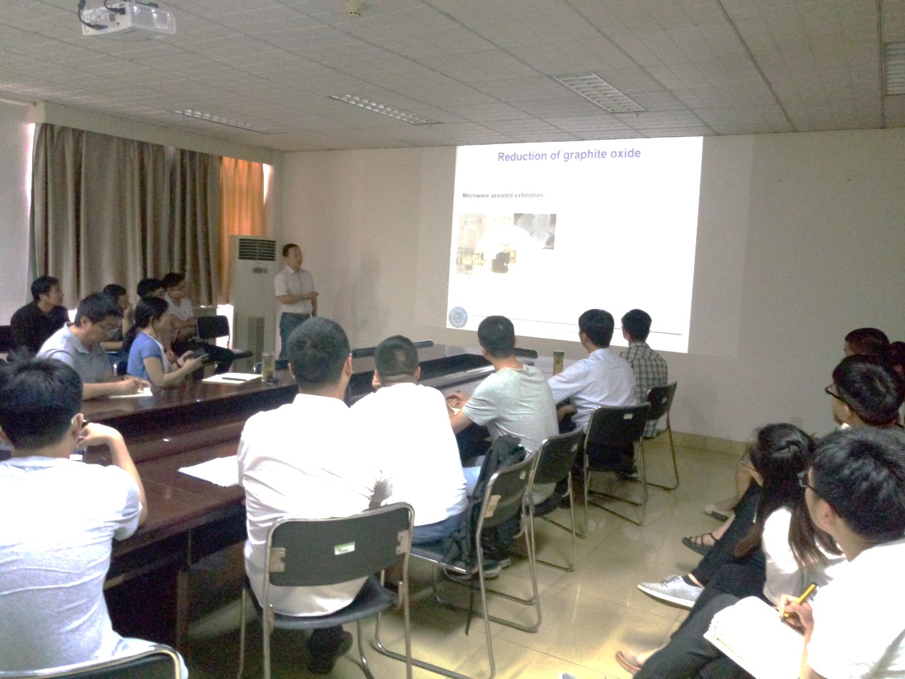 The talk described the development process of graphene oxide, and summarized the research advance of the preparation protocols of graphene from graphite oxide, especially for synthesis of three-dimensional porous carbon materials. Through controlling the structure and components of graphene material, the three dimensional porous graphite material was constructed to improve the performance of energy conversion devices. The development trend in this field has carried on with the deep discussion and outlook; In the industrial applications of graphene materials, Prof. Zhu outlined the recent advances in the preparation of graphene materials by his team to their industrial applications.