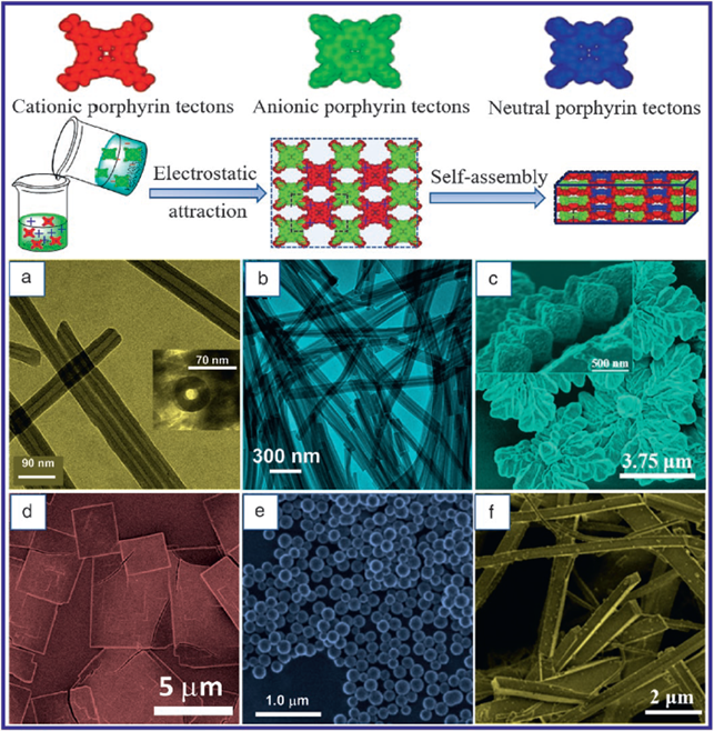 Figure3, images of porphyrin nanomaterials with different shapes and sizes synthesized through the surfactant-assisted cooperative self-assembly method.