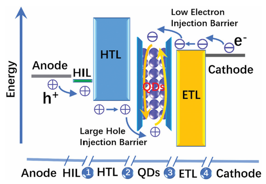 In this paper, the authors review the latest developments of blue QLEDs and present the latest progress in the synthesis of QDs, the device structures, carrier transport materials, interface regulation, light outcoupling technologies. Finally, the development and application prospects of blue QLEDs are summarized, and the advancements of film-forming technology of QLEDs for full-color display applications are presented.