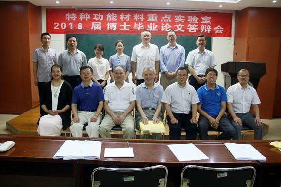 2018年6月14、15日,特种功能材料重点实验室2018届博士、硕士研究生学位论文答辩会在实验室二、三楼学术报告厅顺利举行。答辩委员会主席分别由郑州大学李新建教授、曹少魁教授,河南师范大学戴宪起教授、高书燕教授担任,实验室武四新教授、贾瑜教授、白锋教授、程纲教授、周少敏教授、赵伟利教授、赵勇教授、申怀彬教授、蒋晓红教授、程轲教授等作为答辩委员会成员。3名博士生和39名硕士生进行了答辩,实验室全体师生参加了答辩会。