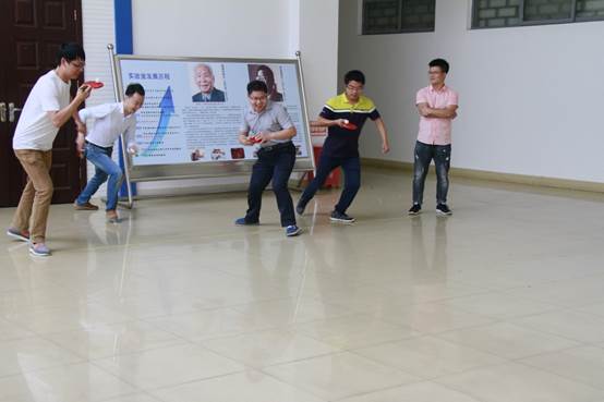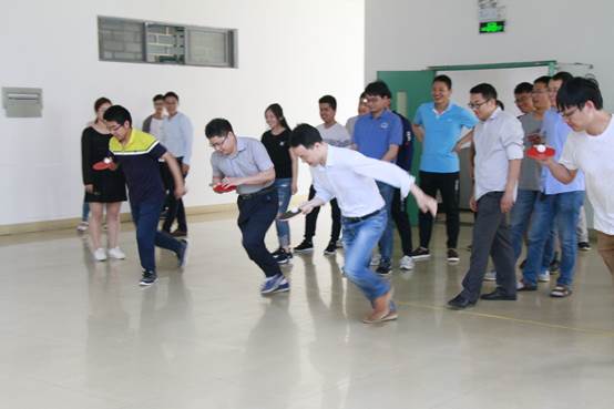 颠球比赛的规则是,4支队伍各派出5名队员,将乒乓球放在球拍上进行往返接力,中途掉球者可原地重新起跑,以最终用时来决定排名。比赛开始后,各队队员利用各种自行研发的诀窍和技术,既保证球不落地,又在速度上尽量赶超对手。在一片加油助威声中,第二组队员又快又稳,顺利拔得头筹。四组、一组、三组依次获得2、3、4名。