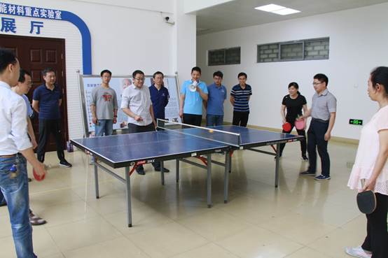 为舒缓师生的科研和工作压力,5月12日下午,特种功能材料重点实验室工会在一楼大厅举办师生男女混合乒乓球赛。为尽量扩大教工的参与度,比赛分为两种形式,一是颠球比赛,一是双打比赛。全体教工共分为3支队伍,学生组织1支队伍。