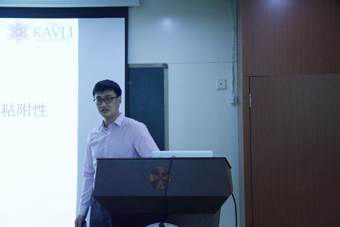 姚博士为大家进行了题为“仿生水/油凝胶材料的特异粘附性开发及应用”的学术报告。姚博士首先通过有机溶剂中溶胀硅橡胶(PDMS)的方式制备油凝胶,该材料具有稳定的而优异的防结蜡性能,进而探究蜡凝胶表面温控液滴传输,以及其对水滴的可逆粘附具有良好的可重复性。随后,姚博士重点讲了水凝超疏水涂层与药物缓释,从表面浸润表征的超疏水性、超疏水界面的抑制扩散作用、水凝胶涂层材料的广泛应用三个方面讲解水凝超疏水相关的研究。最后讲解了丙二醇转化为凝胶材料的溶剂,PG凝胶对冰的融化作用和粘附能的表征等多方面丙二醇凝胶防结冰性质的的研究。
