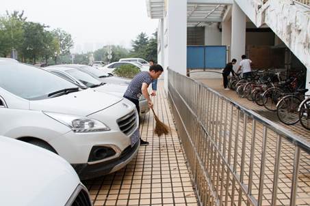 参与打扫卫生的学生在辅导员杨坤鹏的带领下,分工打扫卫生区,捡拾垃圾、铲除杂草,清洗门窗,规范实验室门口自行车、汽车的停放。虽然此次卫生打扫活动范围广、时间紧、任务多,但是学生们分工明确、团结协作,快速高质量的完成了任务。在大家的不懈努力下,实验室周边继续保持着干净整洁的面貌,和花木扶疏,枝繁叶茂的自然环境相得益彰。