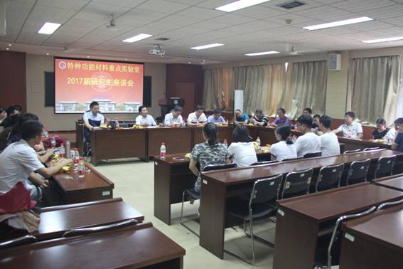 2017年7月2日下午,特种功能材料重点实验室2017届毕业生代表座谈会在二楼报告厅举行。实验室领导班子全体成员及导师代表与会。