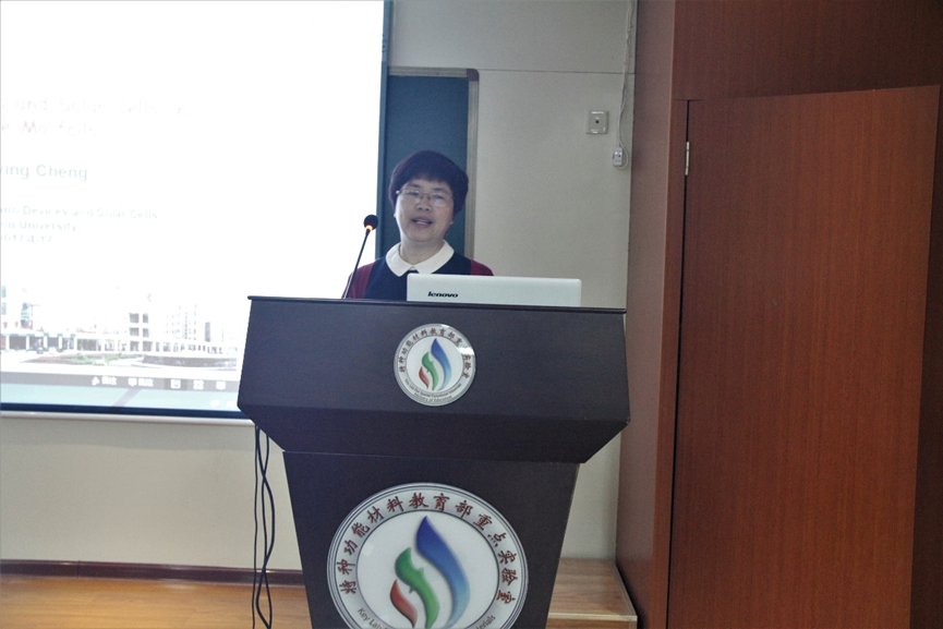 2017年4月17日上午,应特种功能材料教育部重点实验室邀请,福州大学物理与信息工程学院副院长、博士生导师程树英教授来实验室进行学术交流,程老师为实验室师生做了题为“在钼柔性基底上制备铜锌硒硫薄膜太阳能电池”的学术报告。本次报告会由特种功能材料重点实验室省特聘教授武四新主持,特种功能材料重点实验室相关领域的老师和学生参加了此次报告会。
