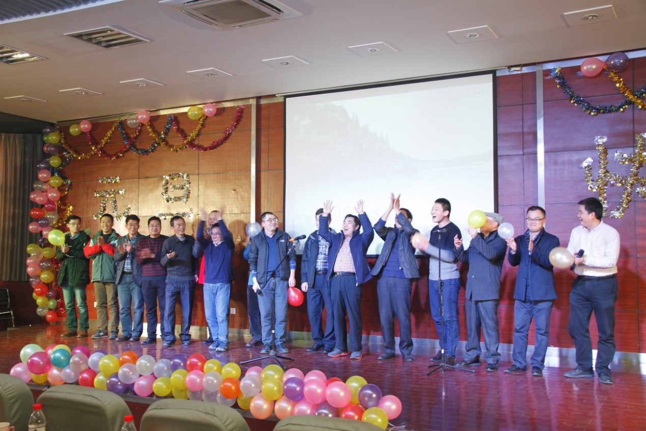 杜祖亮教授首先为元旦联欢会致辞。他对实验室在2016年取得的累累硕果进行了点评,充分肯定了实验室全体师生的辛勤劳动,鼓舞激励大家齐心协力再创辉煌。随后,杜主任为大家介绍了2016年加入实验室的张霖书记、理论物理大家贾瑜教授、自美国访学归国的程纲教授、赵勇教授、孔令刚副书记。他指出,这些人才的引进为实验室注入了新鲜的血液,必将带领实验室走上辉煌发展的康庄大道。上述人员分别为实验室送上祝福,并饱含热情地演唱了《北京的金山上》。随后,实验室全体老师集体上台演唱,以一首寓意深刻的《团结就是力量》把联欢会的气氛推向高潮。台上慷慨激昂,台下掌声如雷,充分展现了实验室欢乐一家人的和谐氛围。