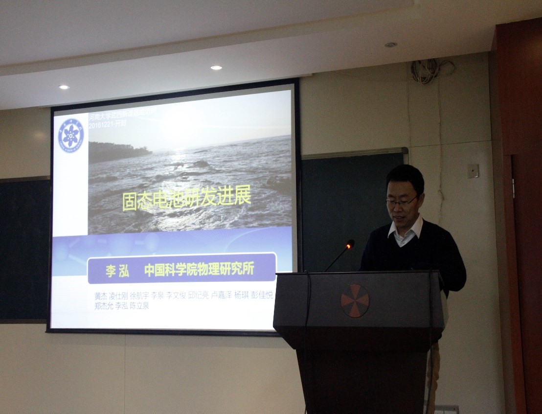 12月21日,应特种功能材料重点实验室邀请,中国科学院物理研究所研究员,北京凝聚态物理所副主任李泓来实验室进行学术交流,李老师为我校师生做了题为“固态电池研发进展”的学术报告。本次报告会由特种功能材料重点实验室省特聘教授武四新主持,特种功能材料重点实验室相关领域的老师和学生参加了此次报告会。