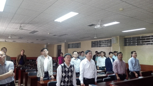 2016年05月12日下午,在雄壮的国歌声中,特种功能材料重点实验室三届三次教职工暨工会会员大会在实验室二楼报告厅隆重举行。特种功能材料重点实验室全体教职工参加了会议,大会分为工作报告和分组讨论审议报告两个阶段。会议分别由实验室副主任白锋教授和实验室副主任、工会主席胡彬彬主持。