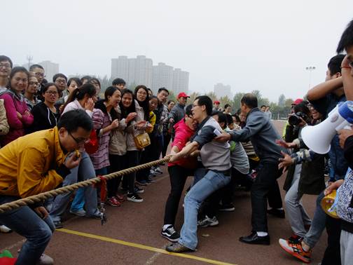 首先开始的是教工项目。在400米竞走项目中,各位老师各显神通,充分展现出了积极向上、争当第一的精神风貌。在8×50米接力赛中,有的老师跌倒在地,仍翻身起来,带着伤痛冲到终点,坚韧不拔、永不放弃的气质把比赛推向了一个高潮。在教师拔河比赛中,老师们斗志昂扬,齐心协力,众志成城,各参赛队奋力拼搏,比赛气氛异常高涨,同学们呐喊助威声此起彼伏,经过几轮激烈的角逐,黄河文明与可持续发展研究中心教师队取得了最后的胜利。