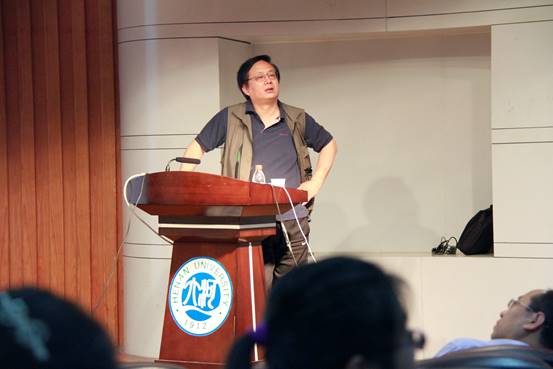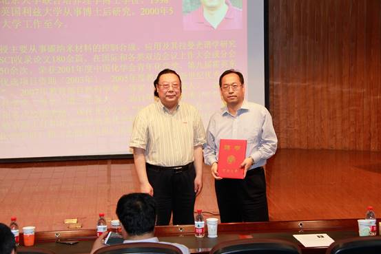 聘任仪式结束后,张锦教授作了题为“CVD Growth of Single-Walled Carbon Nanotubes with Controlled Structures for Nanodevice Applications”的学术报告。单壁碳纳米管(SWNTs)自1993年被发现以后受到科研人员的广泛关注,它的诸多特性有望代替传统硅材料,给电子设备带来新的科技革命。张锦教授针对SWNTs合成过程中面临的几大难题,如生长机制、取向控制、密度控制及半导体/金属SWNTs的分离等方面做了详细介绍。在CVD法合成SWNTs的过程中,采用晶格诱导定向和气流定向方法可得到取向可控的SWNTs。他还通过温度脉冲在SWNTs引入缺陷的方法,成功制备了管径可调的SWNTs。此外,他还提到应用“智能胶带”可完成金属/半导体SWNTs混合物的高效分离,不仅方法简单,分离效率可高达90%以上。最后,张锦教授讲述了利用催化剂在SWNTs生长过程中缓慢释放的原理,可避免催化剂团聚,提高SWNTs阵列的密度,达到SWNTs器件对高排列密度的要求。