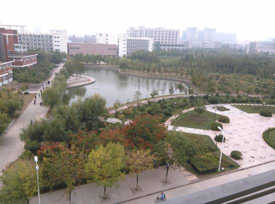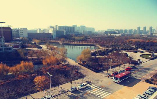 简介:这是新校区北面的局部鸟瞰图。天空是悠远的浅蓝,日光也很明亮,把即将驶离的校车的影子拉得很长。在寂静校园里,已是晚秋了。你看,大路两旁有的树木早已干脆地把树叶落尽,唯有那湖岸旁的柳枝还依然挂着成熟的金黄,让整个暗淡的画面多了一丝明亮。这不正是而今的河大吗?百年的风雨砺磨后,不事浮华,着一份淡远的真实,深沉而又明媚着。我的梦,河大人的梦。