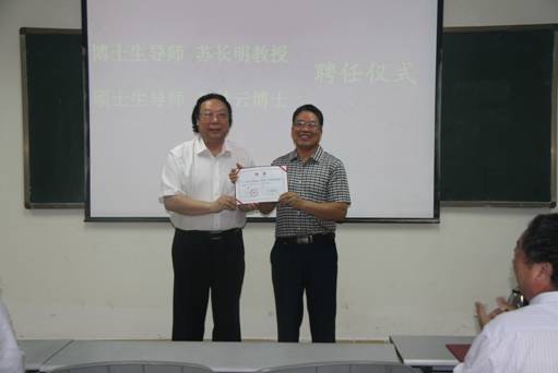 赵国祥分别为苏长明教授和赵梦云博士颁发了博士研究生导师和硕士研究生导师聘书,并发表重要讲话。他对苏长明教授和赵梦云博士的到来表示欢迎,感谢两位导师长期以来对草莓视频