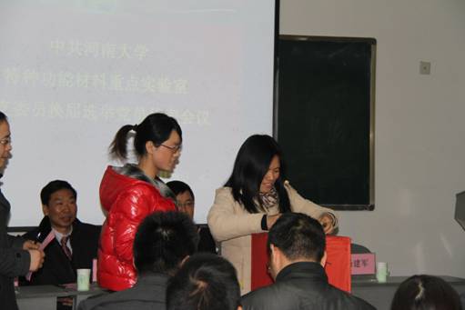 会议在庄严激昂的国歌声中拉开帷幕。赵东保同志代表由特种功能材料重点实验室、天然药物与免疫工程重点实验室组成的上一届总支委员会做工作汇报和党费收缴及使用情况汇报。他重点对科学研究、学科建设、人才培养、基层党组织建设等方面进行了总结和回顾,对今后工作他提出要以不断创新为动力,继续加强党的基层组织建设,服务单位科研发展,成为实现高水平科研单位奋斗目标的政治、思想和组织保证。苗长虹同志代表黄河文明与可持续发展研究中心支部进行了工作汇报。