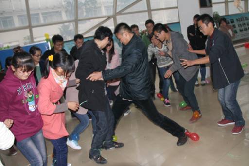 运动会共包含“猜成语,比默契”、“三人四足接力赛”、“默契运气球”、“趣味踩气球 ”四个竞赛项目。比赛中采取男女搭档组成六人团队进行,不仅增加了比赛的竞争性和趣味性,同时也考验了各参赛团队的团结协作能力。