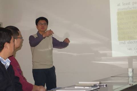 钟海政教授的研究兴趣主要集中在无机纳米晶以及聚合物/无机纳米晶杂化材料在发光、显示器以及太阳能转换器件中的应用。在报告中,钟海政教授介绍了基于半导体纳米晶的照明与显示技术,包括该小组在纳米晶(主要是I -III –VI族)的合成、其在光电器件中应用(主要是纳米晶在白光QLED的应用)和纳米晶全息三维显示方面的相关研究,提出了目前该研究领域存在的问题并进行了展望。报告会结束之后实验室的老师、同学就相关领域的科学问题与钟海政教授进行了深入的探讨和交流。