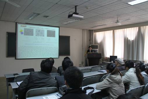 11月22日上午,应特种功能材料重点实验室的邀请,武汉工业学院化学与环境工程系高新蕾教授在特种功能材料重点实验室二楼学术报告厅做了“Schiff碱铜配合物在摩擦学中的应用”的学术报告。重点实验室的有关师生参加了学术报告会。学术报告由重点实验室副主任张平余教授主持。高教授介绍了她的最新研究成果——三种新型摩擦学材料的设计。依据摩擦学中的选择性转移的原理,进行了用Schiff碱铜络合物+甘油-聚乙烯微胶囊将UHMWPE材料改性为具有自身选择性转移效应的摩擦学材料的设计。