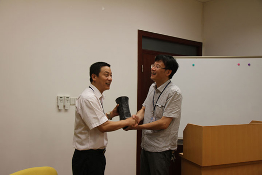 科研处处长苗琛教授代表学校双方互赠了纪念品。