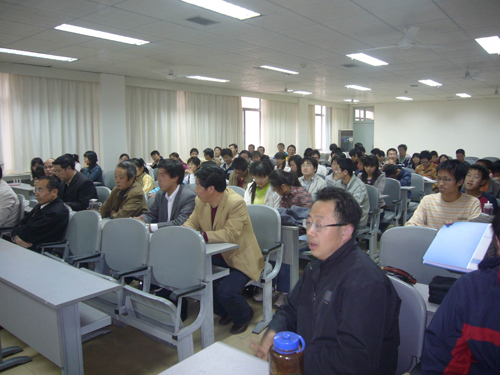 副校长赵国祥,宋纯鹏;教务处处长刘济良;特种功能材料教育部重点实验室、河南省植物逆境生物学重点实验室、数学与信息科学学院的特聘教授,黄河学者和博士生导师与会,05、06级文理实验班理科生参加了这次会议。大会由教务处处长刘济良主持。