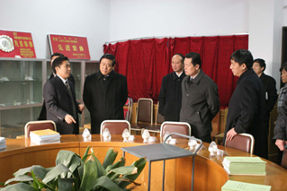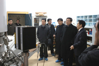校领导张秉义、关爱和、郑邦山、王发曾、黄亚彬,以及相关部门负责人陪同省科技厅领导还听取了我校两个实验室建设情况的汇报。杜祖亮教授、宋纯鹏教授分别向省科技厅领导汇报了特种功能材料重点实验室、植物逆境生物学实验室的建设和发展情况。科技厅领导对两个实验室的建设和发展情况表示满意,不时询问一些情况。