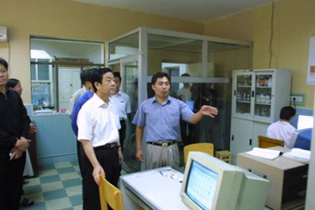 9月12日上午副书记王全书同志在关爱和校长、张秉义书记等校领导的陪同下,参观了实验室。实验室副主任杜祖亮教授给王书记一行介绍了实验室的发展、建设及科研情况。王书记首先在科技管一楼考察了实验室的主要大型设备,细致询问了一些仪器的主要功能和承担的研究任务。对实验室的建设给予了高度评价,认为实验室硬件建设先进,对实验室自行研制设备的工作给予了高度赞扬。