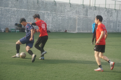 第一节比赛结束后,大家集体合照留念。材料学院院长、特功实验室主任杜祖亮老师为鼓舞学生队热情,临时退出教工队,加入了学生队,并充任场上教练,进行战术指导和组织协调,真正体现了借比赛切磋球艺,增进师生情感的赛事宗旨。在他的指挥带动下,“学生队”士气勃发,渐渐进入了理想状态。中场休息后,下半场比赛开始,赛场气氛愈加激烈。双方球员们都毫不示弱,细腻的脚法,默契的配合,缜密的队形,你来我往,攻防相间,期间出现的精彩射门总能获得场边观众的欢呼与掌声。