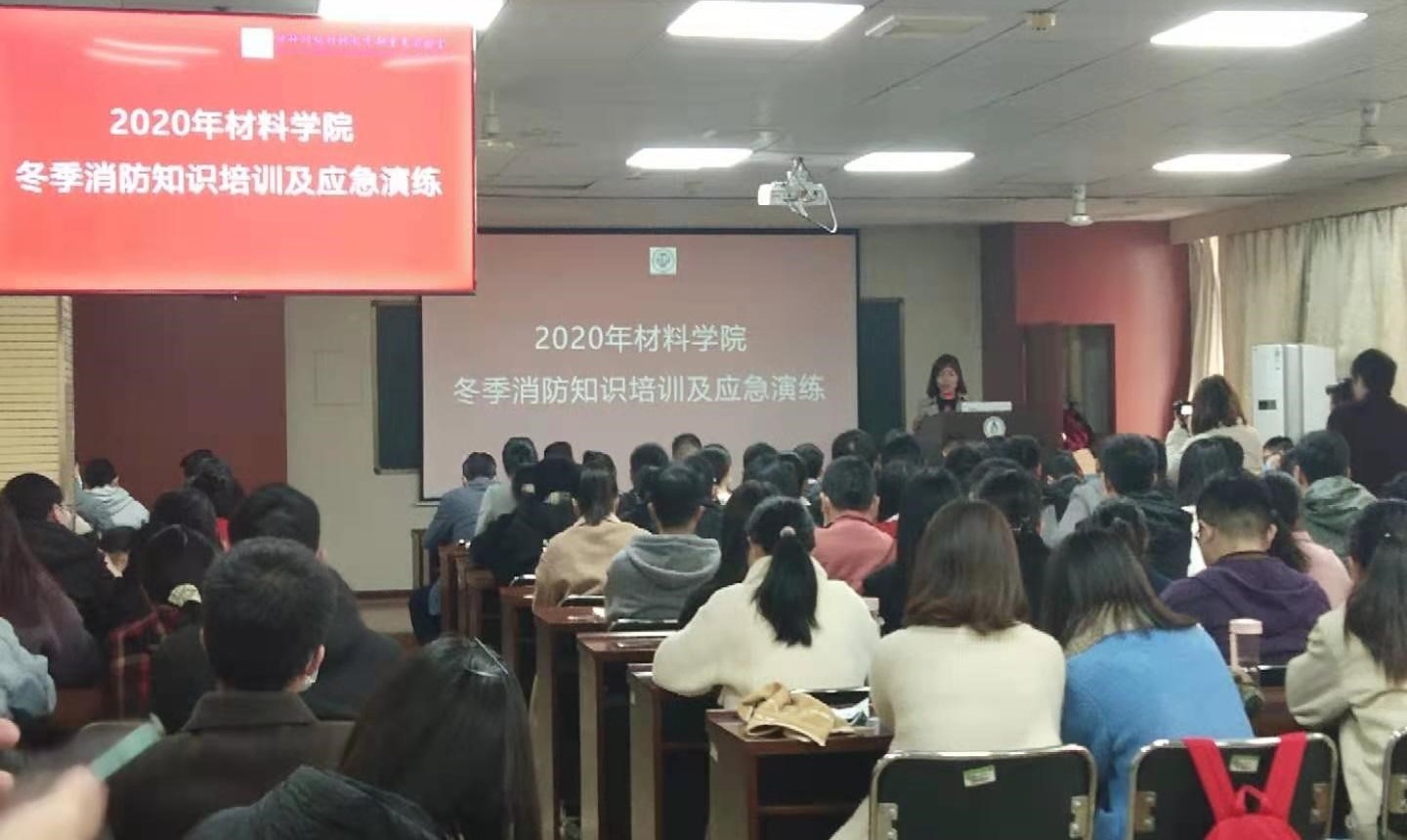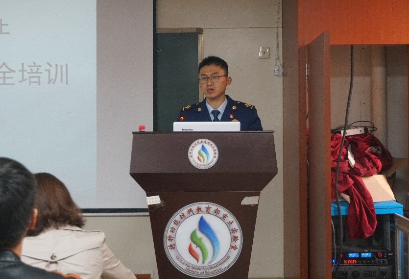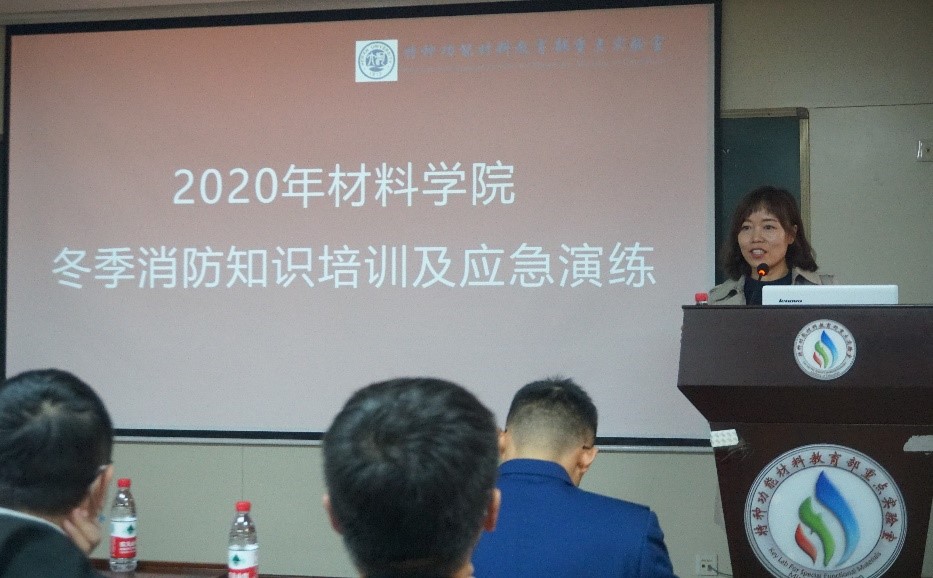 保卫处消防科科长马建军、副科长陈兴富、保卫处安全教育科科长席自强及材料学院副院长刘谨、青年教师、研究生新生等160余人参加活动。会议由刘谨副院长主持。