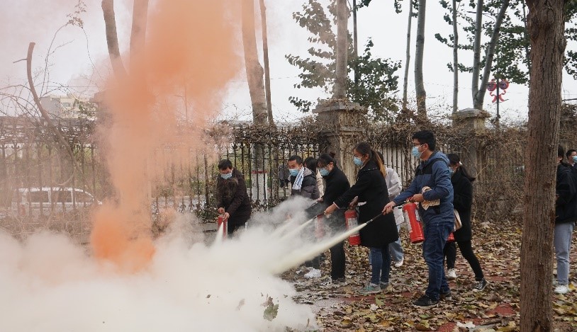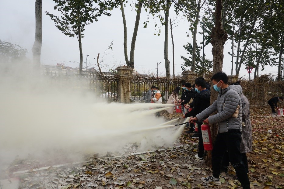 为进一步巩固实践效果,消防科马建军科长还现场演示了灭火器使用的操作程序,并让大家亲身体会使用灭火器灭火的感受,正确掌握灭火器的操作方法。