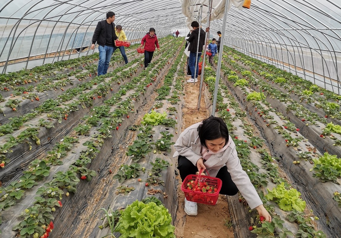 上午10点钟,材料学院女教工及其家属、以及为本次活动服务的青年男教师等40余人在工会的精心组织下顺利到达了中牟现代农业草莓采摘园,开启了欢快的草莓和生菜采摘。为了能让每个人都能采摘到满意的草莓,一共分了三个大棚开始采摘。大里一颗颗红艳艳的草莓,很是惹人喜爱。大家一手领着篮子一边探下身子小心的摘下,有时也忍不住吃上几颗,尤其是当尝到了与众不同的好味道时还不忘发出“啧啧”地称赞声。除了草莓,大棚里绿油油的生菜也受到了大家的青睐,有的草莓还没摘完就跑去挖生菜,很快一个棚里的生菜都被“洗劫而空”,篮子袋子不够装了,有的直接就手里捧着抱着。很快采摘结束,大家把一篮篮一袋袋胜利的果实装上了车。随后老师们从车上拿下工具,在采摘园附近进行了“人人捡垃圾,爱护乡村”的文明志愿服务活动。最后大家乘车返回学校,在路上大家兴奋的讨论着交流着。