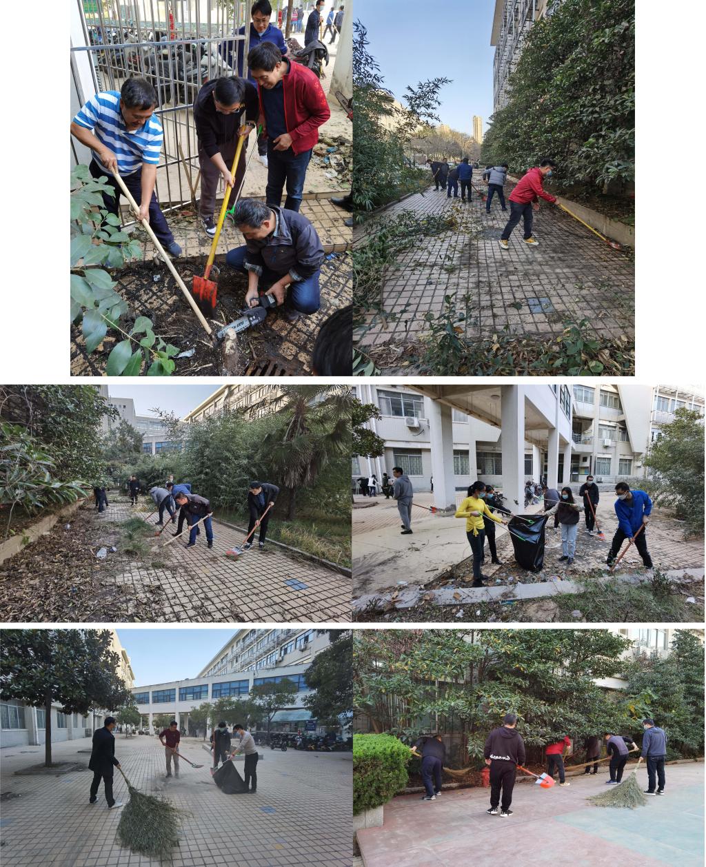 为配合学校省级精神文明校园建设,材料学院全体教职工在张霖书记和杜祖亮院长的带领下,于11月25日下午对学院负责区域进行卫生打扫义务劳动,劳动内容包括清理砖石碎块、清理各种垃圾、清扫地面。活动中,大家各司其职、身体力行,发扬不怕脏、不怕累的劳动精神,为创造更加优美整洁的校园环境出一份力,充分体会到劳动的快乐和成就感。
