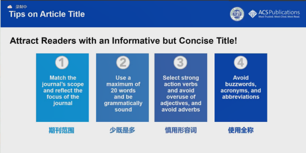 在本次学术会议中,吕京晶专家主要阐释了同行评审的重要性以及ACS期刊的编审过程;作者、审稿人、编辑的职责,以及编辑眼中的优秀文章。从不同角度阐述了写文章时需注意的要点,例如要尽量吸引读者,在题目和摘要部分下功夫,对于题目要在保证科学严谨的前提下发挥创造力,为文章选取一个简洁且能调动读者好奇心的题目等。且从作者身份和作者的权力为出发点,阐述了学术出版中的科研诚信与作者的道德责任。