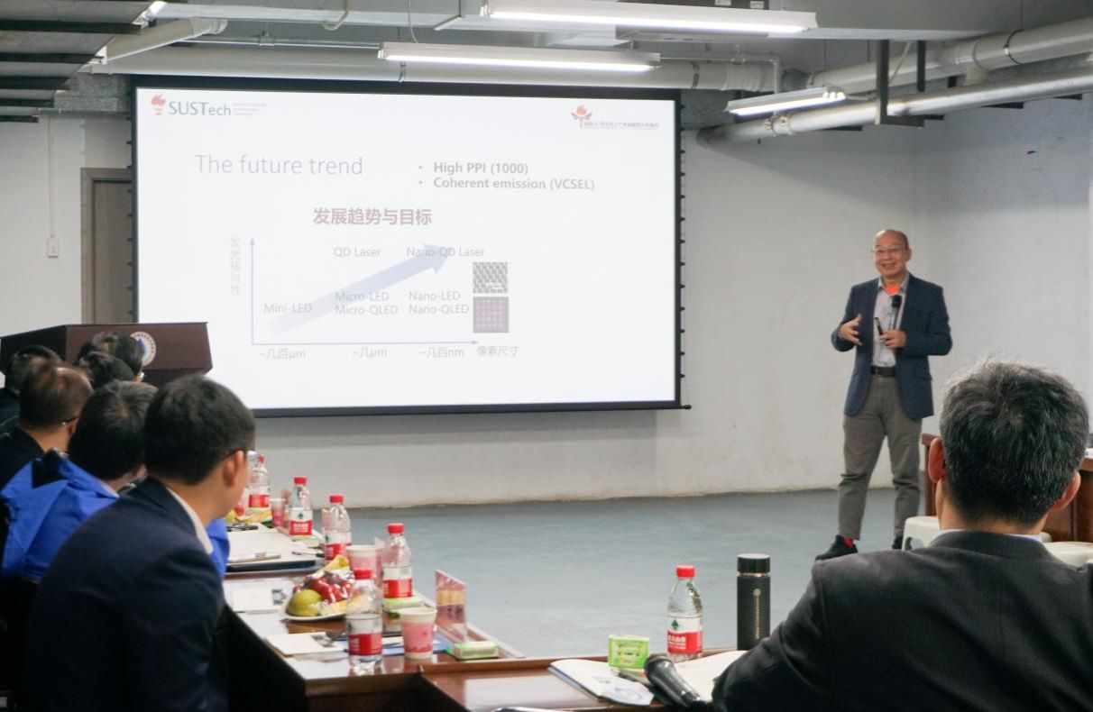 会前,专家学者还实地参观了学院大型设备公共平台,QLED显示技术研发平台以及自驱动纳米传感器件平台,材料学院副院长王书杰教授详细介绍了实验室布局、管理和运行以及主要研究方向等情况。