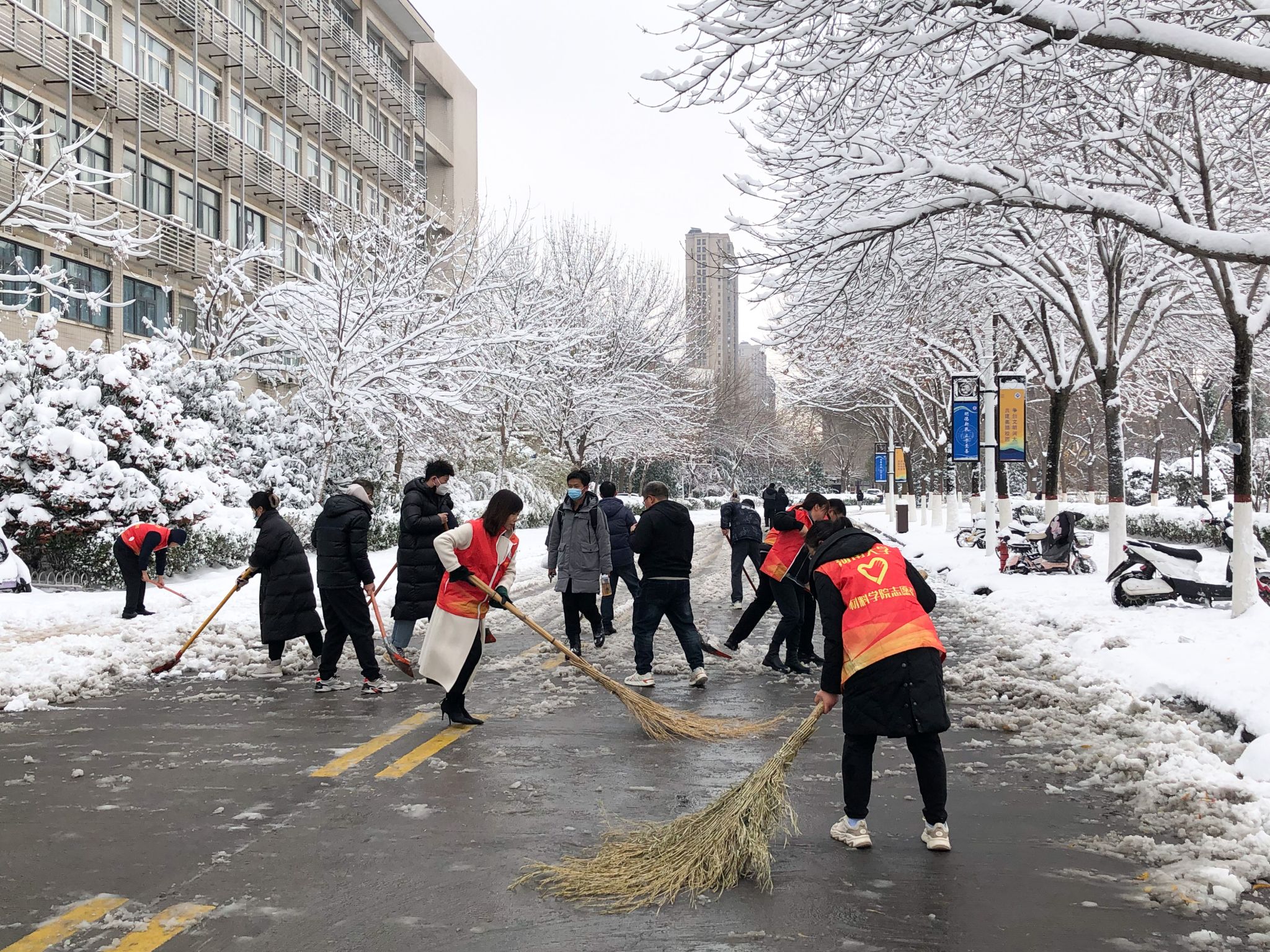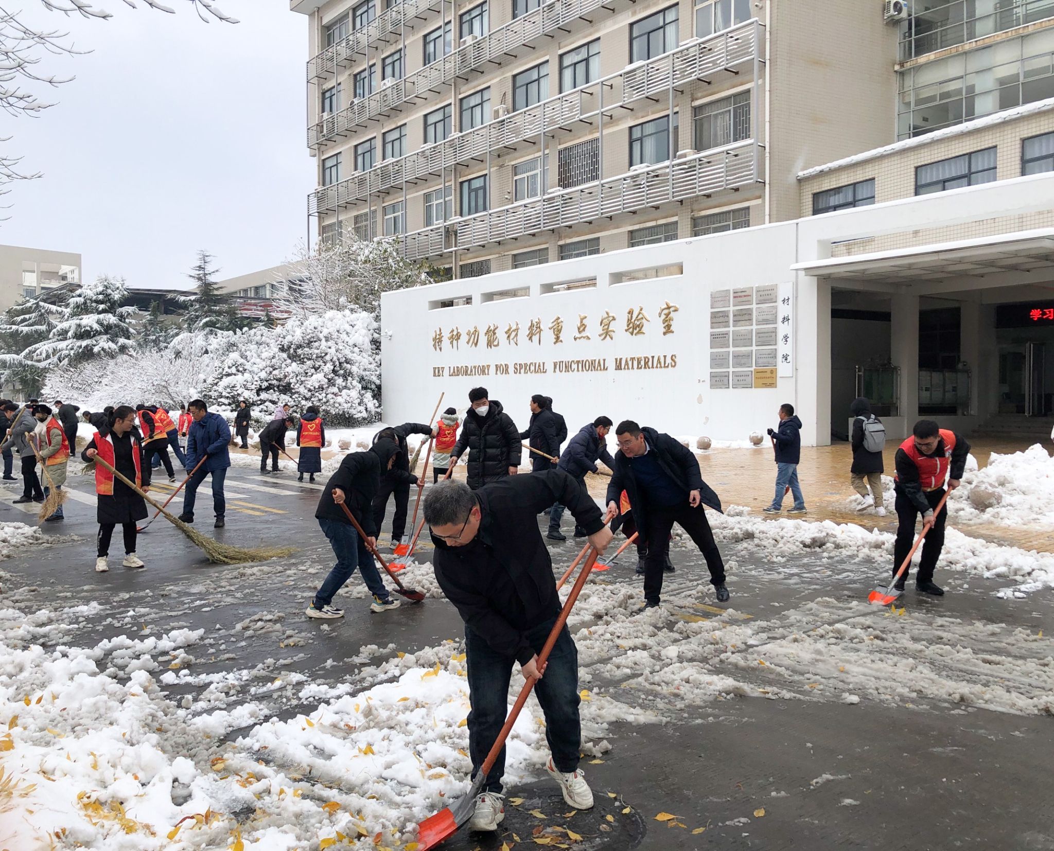——材料学院组织教职工开展扫雪活动