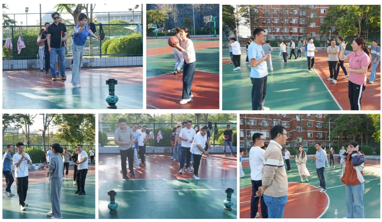 秋高气爽,阳光和煦。下午3时,教职工在学院门口合影留念后,集体步行至金明校区东操场篮球场。活动延续往届传统,以四个工会小组为参赛队伍,设置了“趣味投壶”“趣味接力投篮”和“趣味密码传递”三项集协作性、趣味性与教育性于一体的竞赛项目。其中,“趣味投壶”和“趣味接力投篮”项目全员参与,气氛热烈。投壶项目考验着参与者的技巧与定力。每位老师手持两支箭,轮流上阵,他们认真瞄准、沉稳投掷,不断调整出手角度,力求投出最完美的弧线。接力投篮则强调团队间的无缝衔接与默契配合,老师们活力四射、配合流畅,充分彰显了拼搏向上的精神风貌。最为精彩的当属“趣味密码传递”项目。各工会小组派出6人,以1米间距列队,由首名队员作为“接收员”根据裁判出示的卡片(如“电话”“对牛弹琴”等)进行演绎,其后队员依次模仿传递,由末位的“破译员”猜词。老师们的表演时而贴切逼真,时而夸张逗趣,将现场气氛推向高潮。整个活动过程中,各工会小组精神饱满、配合默契,赛场上下掌声、笑声不断,洋溢着紧张而欢快的气氛。经过激烈角逐,最终根据三项比赛总积分评定,工会四组荣获优胜。