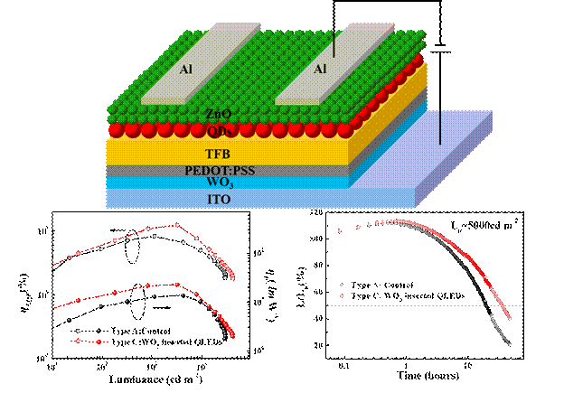 杜祖亮教授课题组在ACS Appl. Mater. Interfaces中发表了用WO3提高量子点发光二极管的效率和寿命的研究结果