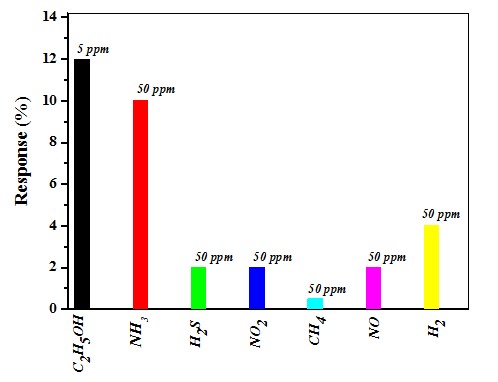 图二:室温下基于Bi2S3纳米线传感器对乙醇气体选择性测试