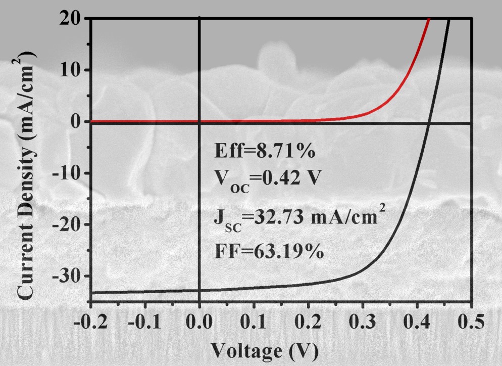 铜锌锡硫薄膜太阳能电池在组装过程中需要对吸收层铜锌锡硫进行硒化处理,由于锡元素在高温条件下易于以气态硒化锡的形式损失进而导致杂相生成,在铜锌锡硫前驱体膜制备过程额外添加锡元素有利于抑制锡的损失以及杂相的生成。在太阳能电池器件的组装过程中,我们采用无肼溶液法进行组装来降低器件组装成本,以纯金属粉末为金属源降低杂质引入,最终获得了8.71 %转换效率的器件,该效率目前为液相纯金属法制备的铜锌锡硫薄膜太阳能电池的最高效率。该研究成果在铜锌锡硫薄膜太阳能电池研究及应用方面具有重要的指导意义。