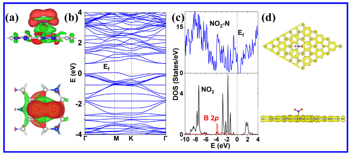 图:理论计算对NO2分子在B掺杂的C3N表面吸附的电子结构表征