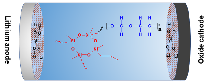锂金属电池中含硅聚醚电解质在正负极上形成稳定SEI层的机理示意图