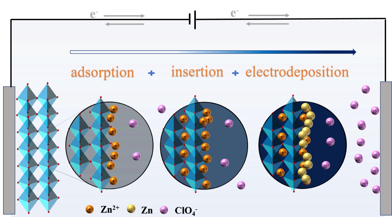 电致变色器件是指在施加较低电压作用下其光学性质发生可逆持久变化的一种装置,由于其低功耗和广泛的应用前景而受到了广泛的关注,如智能窗户、信息显示和军事伪装等。然而,传统的电致变色器件在实际应用中仍存在一些关键瓶颈,如光学调制范围窄、着色效率低、循环稳定性差以及紫外屏蔽受限等问题,阻碍了其实际应用。针对上述问题,本文提出一种基于Zn2+可调谐相互作用的电致变色器件,在不同电压下,Zn2+在超结构Nb18W16O93双金属氧化物薄膜上将依次发生吸脱附、嵌入/脱出及可逆电沉积过程。利用三者间的协同作用获得了具有光学调制范围大、响应速度快、着色效率高和循环寿命长等优点的电致变色器件,该工作不仅进一步提升了器件电致变色性能,还创新性地融合了可逆电沉积和离子吸脱附及脱嵌在电致变色过程中的多步可调谐技术。在同一个器件中实现多步可调谐机制为开发高性能电致变色器件提供新策略,并为下一代电致变色器件提供新的思路。