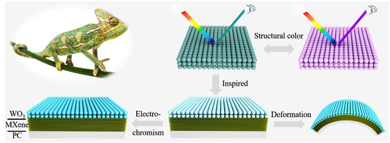 针对现有变色驱动器件受环境条件影响可控性不高及变色单一难题,课题组提出了一种基于MXene/WO3法布里-珀罗(F-P)微腔驱动器,将可逆形变、结构色及电致变色集成于一体。施加较小的电压,MXene/WO3薄膜发生离子插入/脱出引发的应力及光学吸收变化,从而实现超大形变(最大角度达95°)及电致变色的双重响应。此外,F-P微腔结构引发薄膜物理光相互作用,赋予薄膜黄色、绿色、紫色、粉红色和蓝色的宽色彩变化范围。所构建的柔性驱动器展现出优良的抓握能力,为柔性机器人及下一代智能机器人的发展开辟了新的方向。该成果以Tunable MXene/WO3 Fabry-Pérot microcavity architecture for bioinspired soft electrochromic actuators with vivid colors为题发表在期刊Adanced Functional Materials上(//doi.org/10.1002/adfm.202416812)。草莓视频