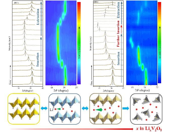 过渡金属氧化物基电致变色材料变色现象的发生主要是基于外加电场下离子和电子的共同注入和抽出过程。深入理解离子传输路径与电化学反应特性和电致变色性能之间的构效关系对高性能电致变色材料的设计与构筑至关重要。基于此,电致变色课题组借助一系列原位表征技术和理论分析,详细探索了典型层状V2O5电致变色材料中不同离子传输路径下离子的传输行为和电致变色性能。通过改变嵌入V2O5中的Li+的含量调节V2O5的层间距,改变离子传输路径,随后探索不同层间距下的电化学行为和电致变色性能,成功构筑离子传输路径与电致变色性能间的构效关系。为不同电化学反应阶段电致变色性质的演变提供了理论依据。对层状V2O5薄膜中的离子输运行为提供了重要的认识,为开发和设计优质层状TMO电致变色材料提供了基础理论指导。该成果以Regulating the Ion Transport in the Layered V2O5 Electrochromic Films with Tunable Interlayer Spacing为题发表在期刊Advanced Optical Materials上(//doi.org/10.1002/adom.202400459)。草莓视频
