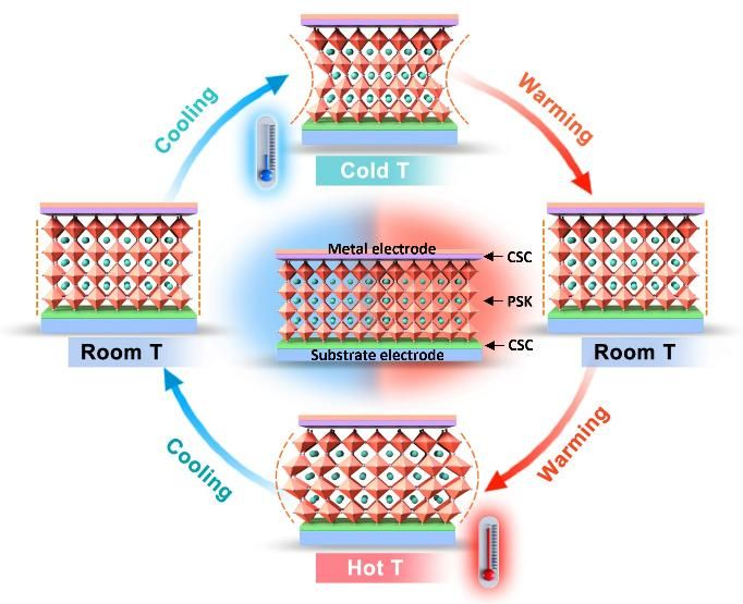 图1. 循环温度对钙钛矿结构的影响示意图