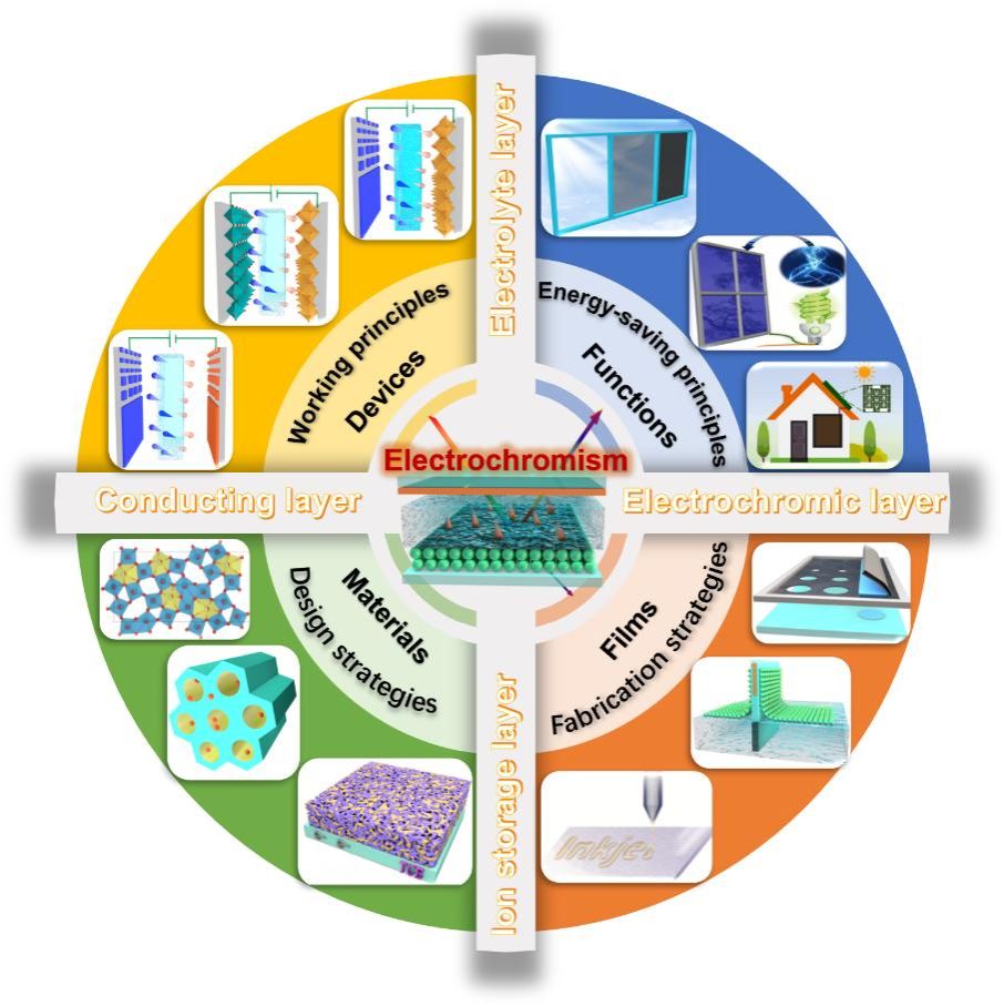 电致变色器件具有环境友好、能耗低以及在开路条件下出色的光学记忆效应等优点,在节能智能窗、低功耗显示器、调光后视镜和可穿戴电子产品领域极具应用前景。近年来,大量研究工作致力于高性能电致变色器件的设计与开发。然而,现有电致变色器件仍然无法满足商业化应用的性能要求。该综述全面总结并分析了高性能电致变色器件的研究进展、局限性以及可能的解决方案。该综述特别强调了高质量电致变色材料、离子存储材料及宽电压窗口/高离子电导率/高透明度的电解质的设计,探讨了湿法成膜方法以及透明导电电极的选择策略,总结了多功能电致变色器件的最新研究进展,为引导未来高性能电致变色器件的商业化制造提供理论基础和技术基础。