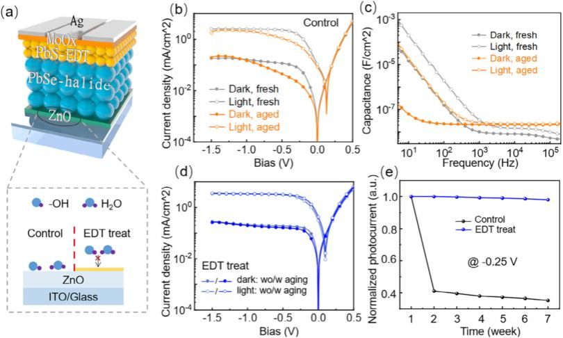 图1:EDT处理ZnO电子传输层提升PbSe量子点红外探测器储存稳定性