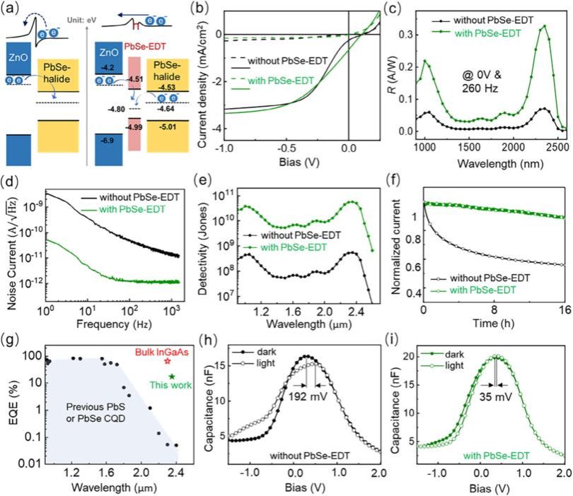 图2:n-p-n型电子收集界面对PbSe量子点光电探测器效率和稳定性的改善
