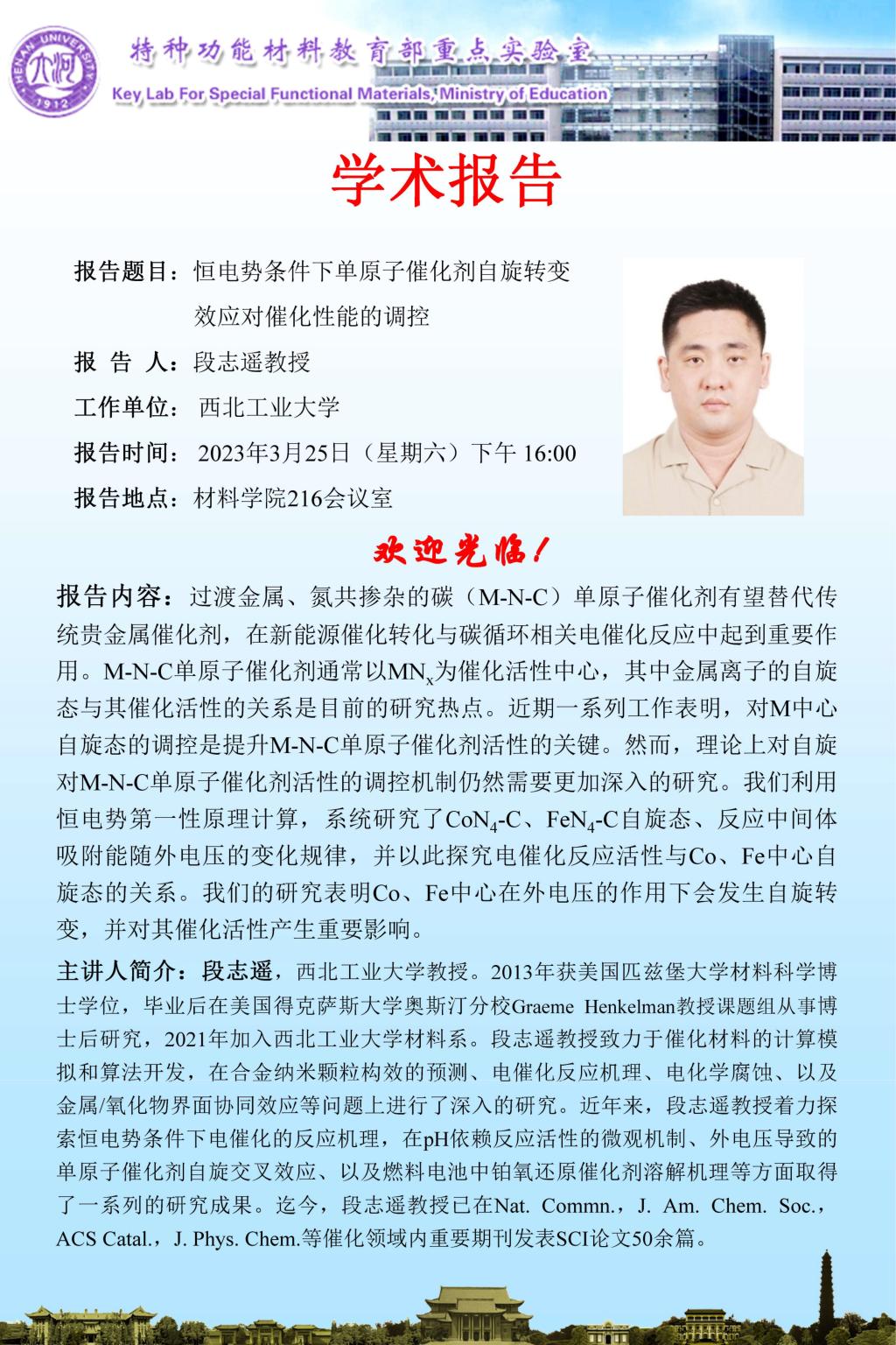 段志遥:恒电势条件下单原子催化剂自旋转变 效应对催化性能的调控(时间3.25)
