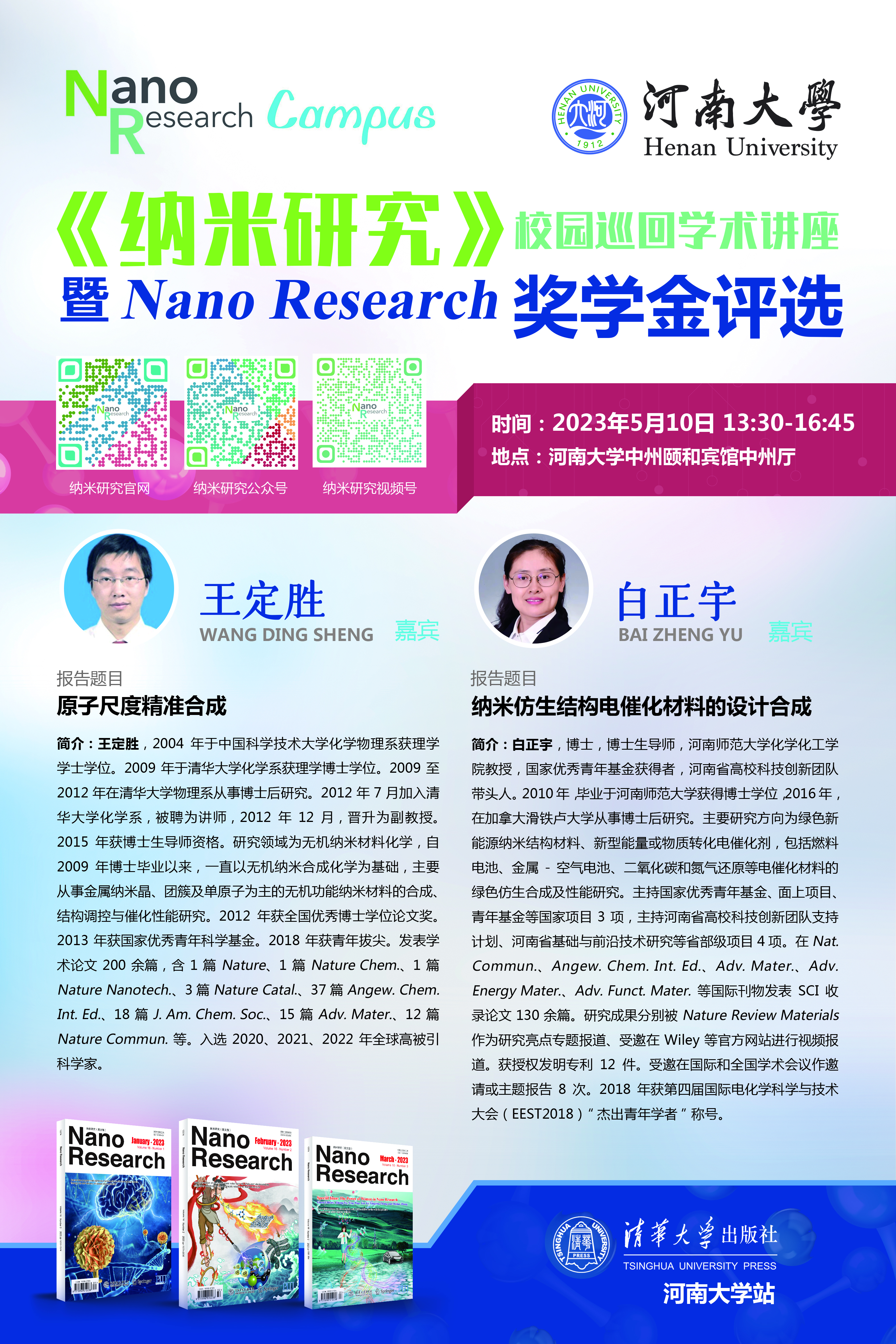 《纳米研究》校园巡回学术讲座(时间5.10)