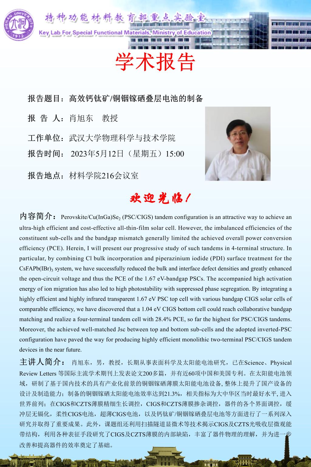 肖旭东:高效钙钛矿/铜铟镓硒叠层电池的制备(时间5.12)